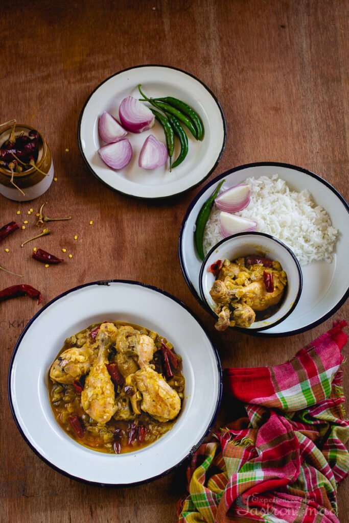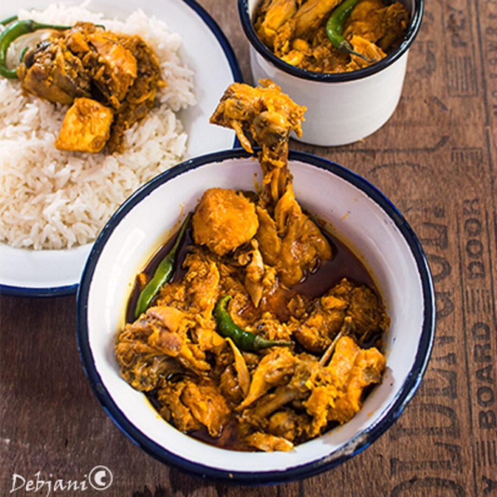 It is believed that it was usually the Muslim khalasis were the inventor of this dish, since in those days chicken as a meat was a big no-no in Hindu Bengali households. Of course, with time it has changed.