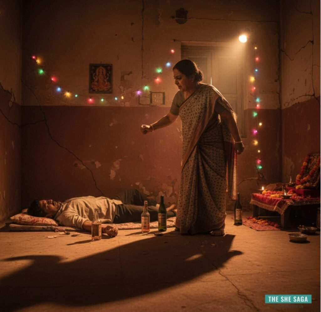 “Look at you,on Diwali night, is this the time to come home? Will Devi Lakshmi wait for you?” he slurred, as she stifled her sobs and did her best to back away.