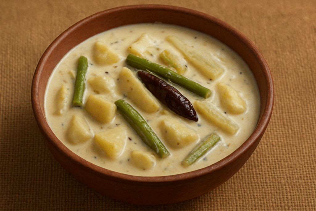 Born in the ancient kitchens of Bengal, I was the brainchild of a deft war between taste and health. They added korola/uchhey (bitter gourd) to humble me, then quickly panicked and drowned me in milk, poppy seeds paste, and a guilt-tripped apology of a potato. Bitter yet creamy—much like your ex.
