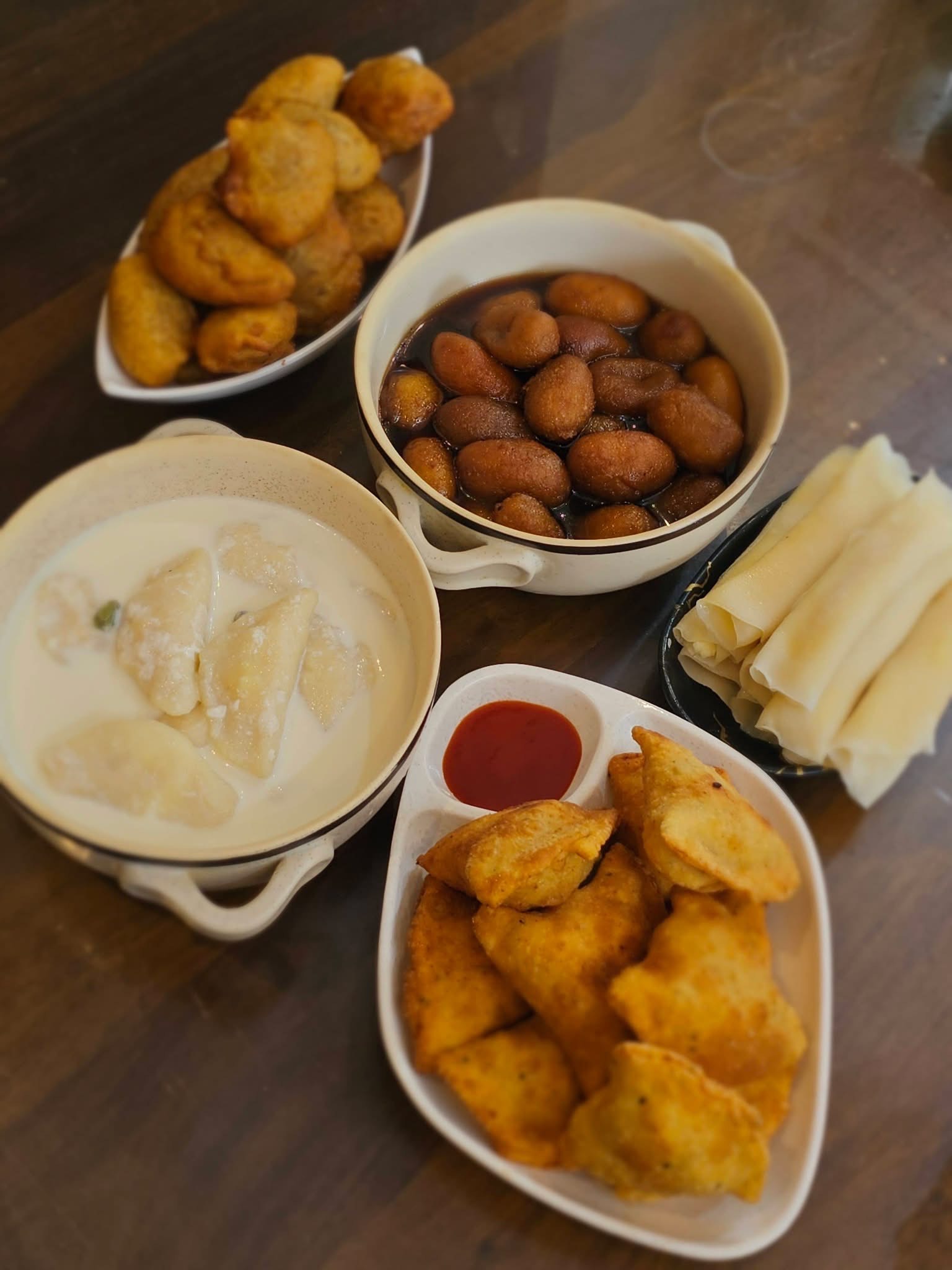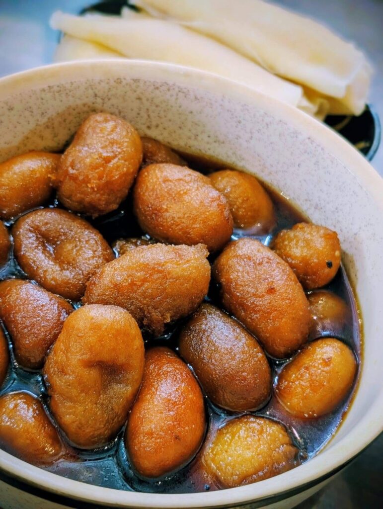 - Dudh pulis (rice dumplings in jaggery milk)