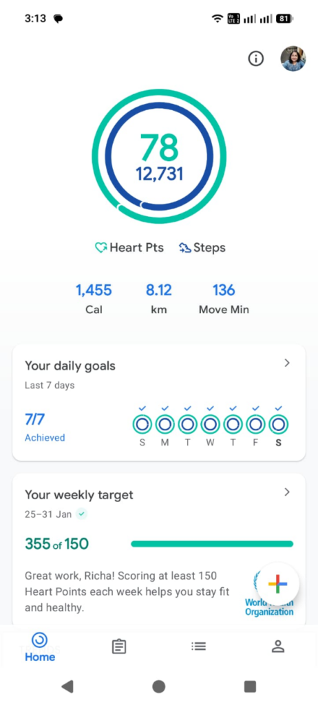 When I used to live in Delhi, and after that, when I joined school teaching, walking was imperative. It is inevitable in a metropolitan city or a job. However, when I resigned from my job, I had to consciously take up walking as a form of exercise. Initially, fifteen minutes of walking would bore me. Then I started listening to music while walking. It was then that my step count shot up to 5,000 steps per day. Despite this, my heart points remained a meagre 25-30 points per week because I didn’t do brisk walking – I walked at a normal pace. In the past six months, I have amped up my step count and heart points. The former has touched 10,000 steps per day, sometimes reaching up to 20,000 steps. My heart points have reached above 450 points, while the WHO recommends 150 as good enough. I prefer walking to a nearby distance for running an errand rather than using my scooty. My ambulophilia is sure to keep many lifestyle diseases at bay.