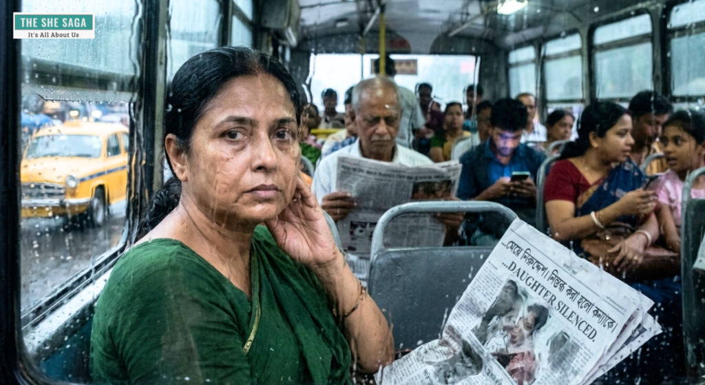 The busy day progresses into a seemingly calm night. Nothing seems to  be out of place : nothing at all – till a daughter is shoved into the darkest corner of the world, her cries muffled and silenced. And suddenly everything feels like treachery. How can a day that starts off  beautifully hide a deep, dark secret slithering about in the dark recesses of the night? How can a young girl, brimming with life, standing on the threshold of new dreams be trampled and crushed and silenced forever?
